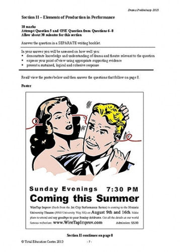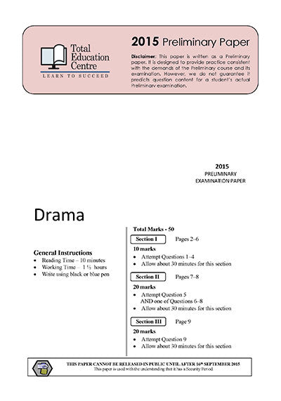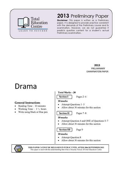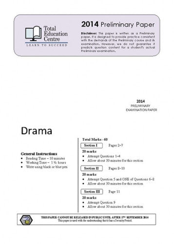 This paper has been written by experienced markers and teachers to provide an authentic examination experience for Preliminary Drama students. Marking guidelines are provided. Two versions of the paper are available: Word and PDF. The Word version is for a teacher as it can be easily cut and pasted and is copyrighted to use with multiple students. The PDF version is for a student buyer for personal...
