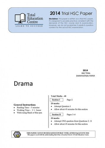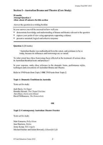 This paper has been written by experienced markers and teachers to provide an authentic examination experience for HSC Drama students. Marking guidelines are provided. It is excellent practice for the actual written examination. Two versions of the paper are available: Word and PDF. The Word version is for a teacher as it can be easily cut and pasted and is copyrighted to use with...